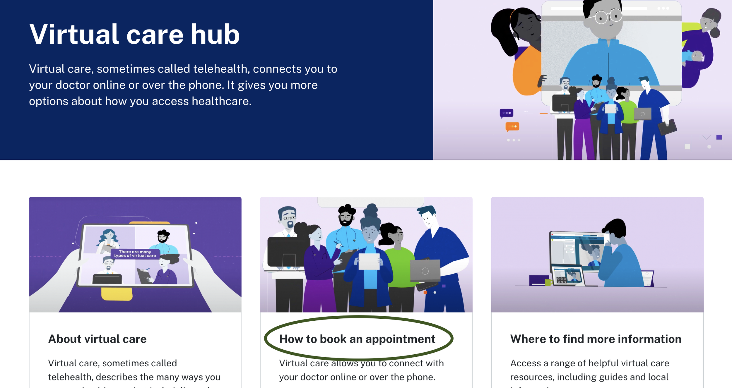 The main issue was the fact that people couldn’t figure out how to actually book an appointment. They were comfortable with the ‘About Virtual Care’ page however, when they looked through the ‘How to use Virtual Care’ page they expected to find out about appointments and how to book them.